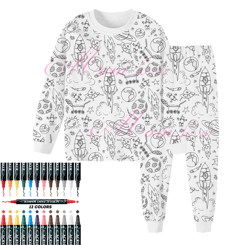 Балдар' Түстүү пижамалар: чыгармачылык үчүн канвата Уткалуу убактысын биздин балдар менен көңүлдүү искусство окуясына айландырыңыз DIY түстүү пижама! 3-8 жаштагы кичинекей сүрөтчүлөр үчүн жасалган бул PJ ыңгайлуулук менен чыгармачылыкты айкалыштырат, балдарга ар бир жууга болот. Негизги өзгөчөлүктөрү: Жумшак жана эскимдүү кездеме: 95% пахтадан + 5% спандекстен жасалган пижама дем алуучу, териге жумшак жана активдүү ойноо же ыңгайлуу уктоо үчүн ийкемдүү. Дудл – Даяр Дизайн: Бош – кенент үлгүлөрү (ракеталар сыяктуу, Принцесса!) балдарды түстөргө, сүрөттөөгө жана өзүн билдирүүгө чакырат! Uzin/Short Sleeve Options: муздак түндөр үчүн узун жеңди же жылуу күндөр үчүн кыска жеңди тандаңыз. Жыл бою чыгармачылык көңүл ачуу үчүн идеалдуу. Белек – даяр: уникалдуу белек катары таңгакталган! Туулган күндөрү, майрамдар үчүн же жөн гана эле элестетүүгө кубаттуу белек менен күлүмдөндүрүү үчүн идеалдуу. Эмне үчүн ата-энелер жана балдар аны жакшы көрүшөт: чыгармачылыкты үндөйт: Балдар өз сүрөт чыгармаларын кийип, сыймыктанышат. Биринчиден, ыңгайлуулук: Пахта менен жасалган кездеме балдардын уктап жатканда, ойноп жатканда же кыялдап жатканда ыңгайлуу болушун камсыз кылат. Алар менен бирге өсүп жатат: 3-8Y өлчөмү өсүп жаткан балдарга ылайыктуу, бул алардын кийим-кече шкафына (жана чыгармачылык рутинасына) туруктуу кошумча. Perfect For:Birthday gifts that inspire creativityHoliday gifts (Christmas, Easter, etc.) Rainy – day indoor activitiesMaking before sleepKids Coloring Pijama Sets (Ages 3-8) Продукция Advantages1、Interactive DIY Coloring Fun3-8 жаштагы балдарга аларды түстөп, чыгармачылыкты өркүндөтүү жана уктоо убактысын кызыктуу кылуу менен пижамаларын жекелештирүүгө мүмкүнчүлүк берет кызыктуу, көрсөтүлгөн үлгүлөр менен иштелип чыккан. Жеткилимдүү ылайыкташтырылган параметрлер ар кандай рыноктордун жана чекене сатуучулардын муктаждыктарына ылайыктуу көлөмдөрдү, үлгүлөрдү, таңгактарды жана брендингди камтыган ылайыкташтырууну колдойт.